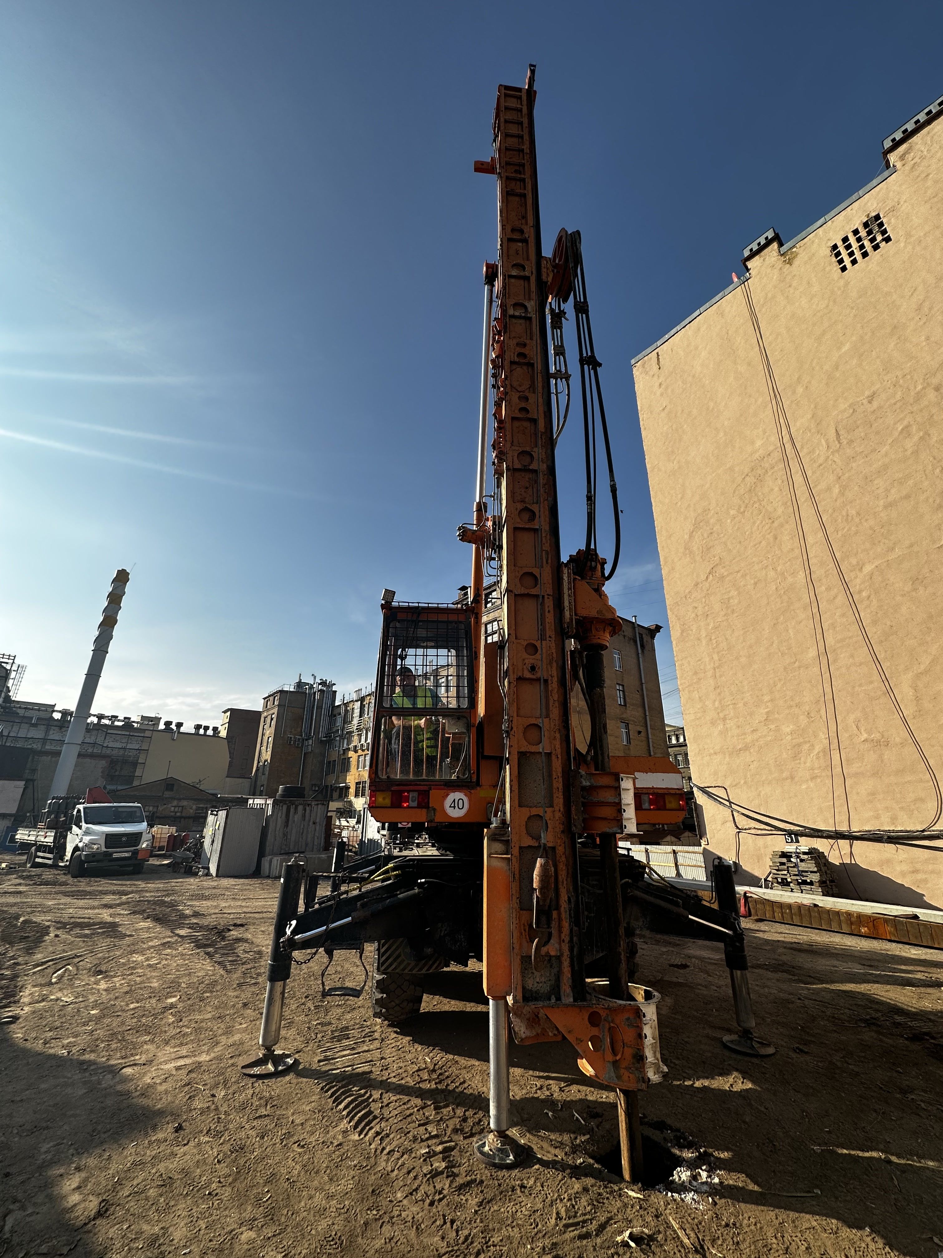 Преимуществом машины является сваебойное оборудование, обеспечивающего забивку свай длиной 8-12 метров. Позволяет вести строительство на любых типах почв, в том числе и на слабых грунтовых основаниях с большей производительностью и меньшими временными затратами.